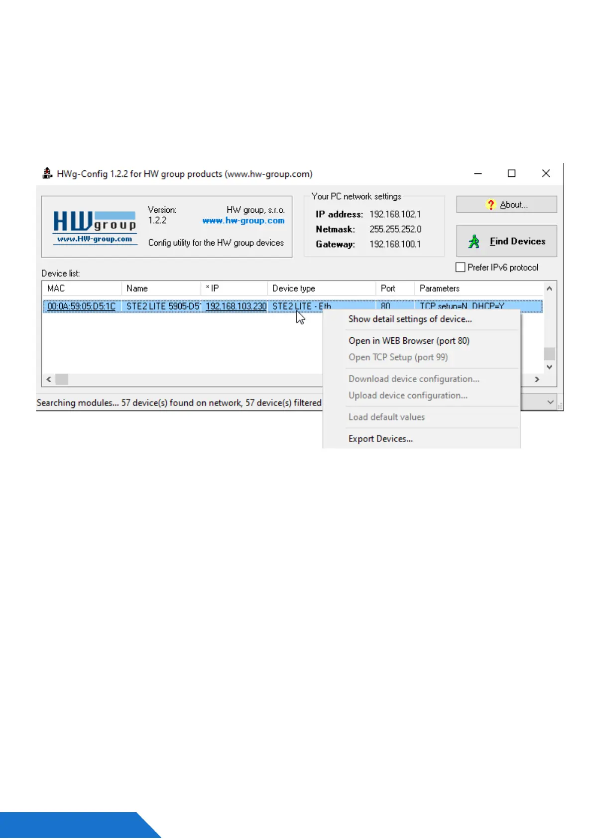 3) Click on the underlined IP address in the HWg-Config program.