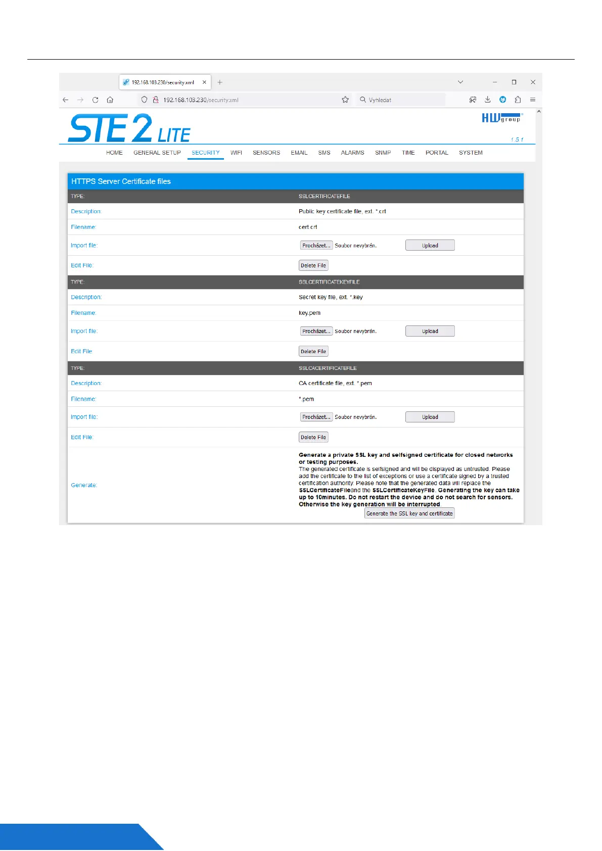 Used to manage certificates needed for the HTTPS server. Allows you to upload or delete a