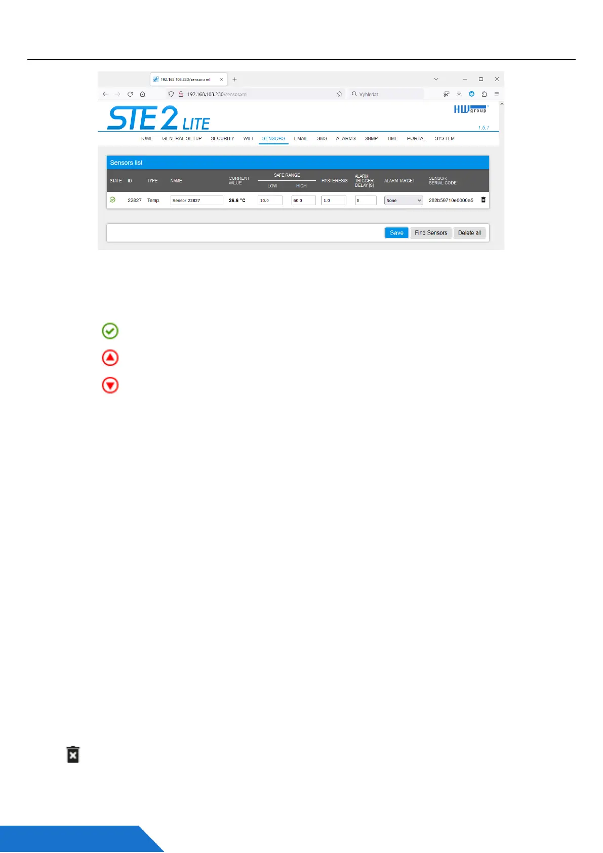 • Delete – The button to delete a specific sensor.