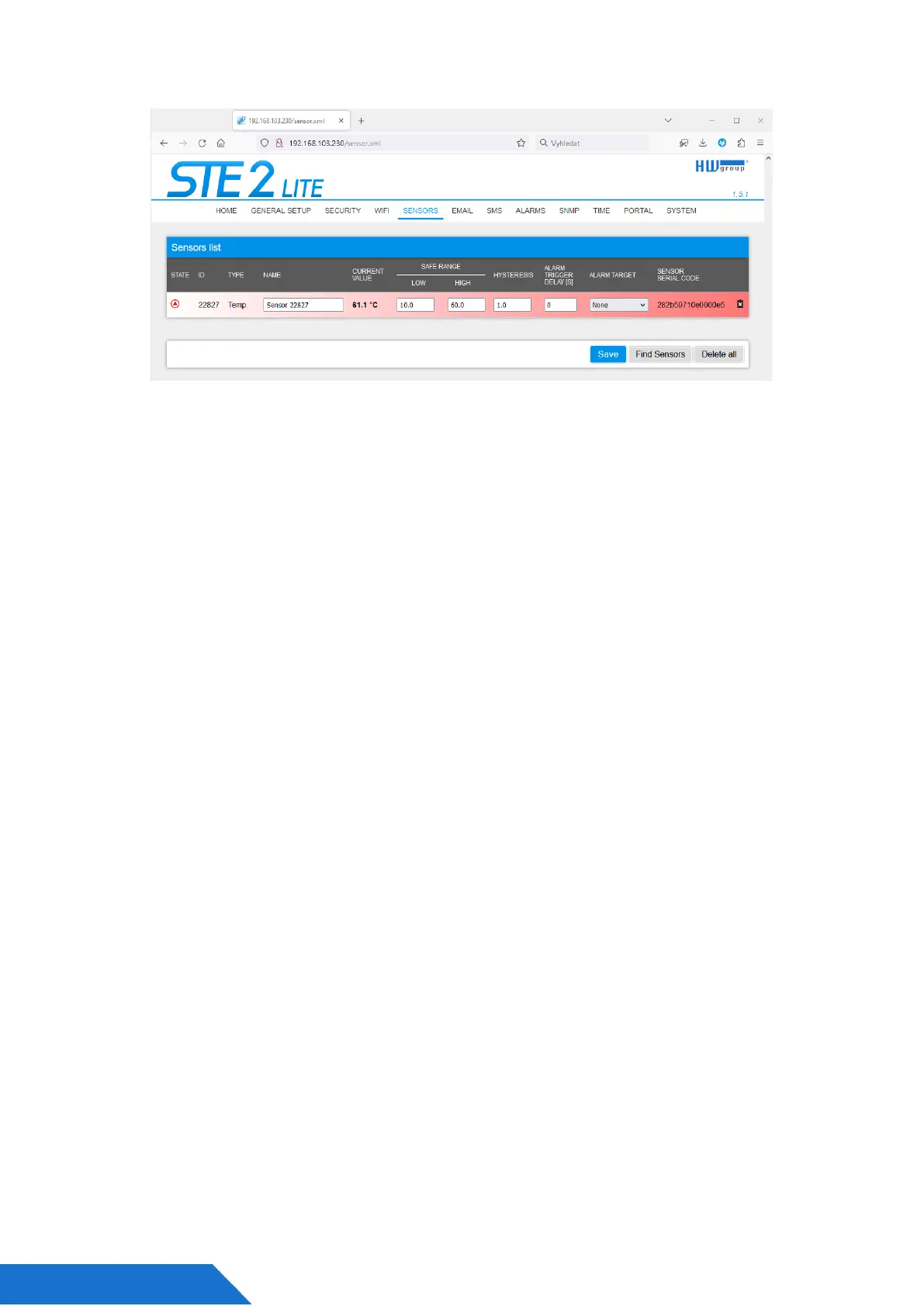 * Sensor in the Alarm state is highlighted.