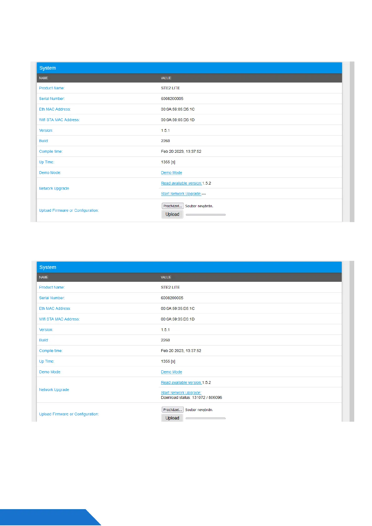 4) Start Network Upgrade Serves to upgrade firmware to the device. The download