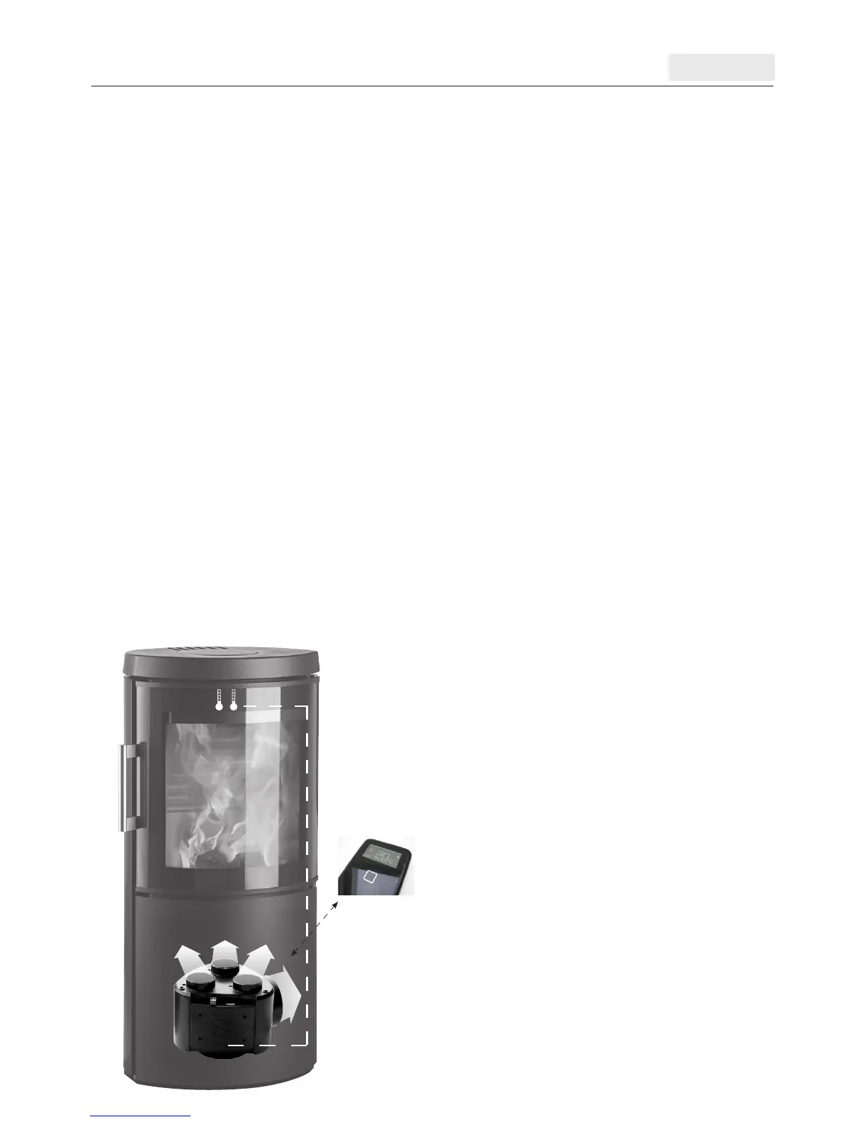 minimum of two meters from the wood-burning stove. The wireless remote control measures the
