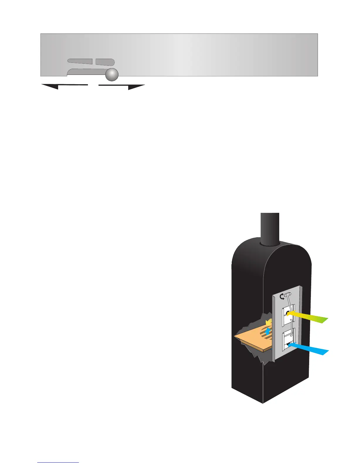 The rate at which the stove burns is controlled by adjusting the air entering the stove. Moving the control from