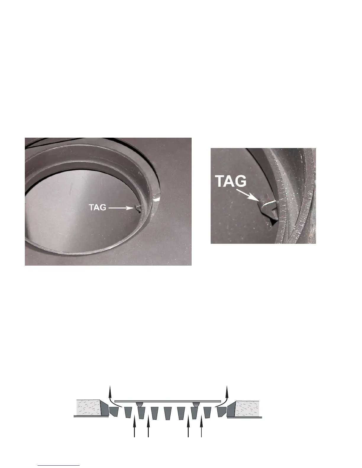 The tag is visible as you look down through the flue spigot. It should be carefully snapped off by either using