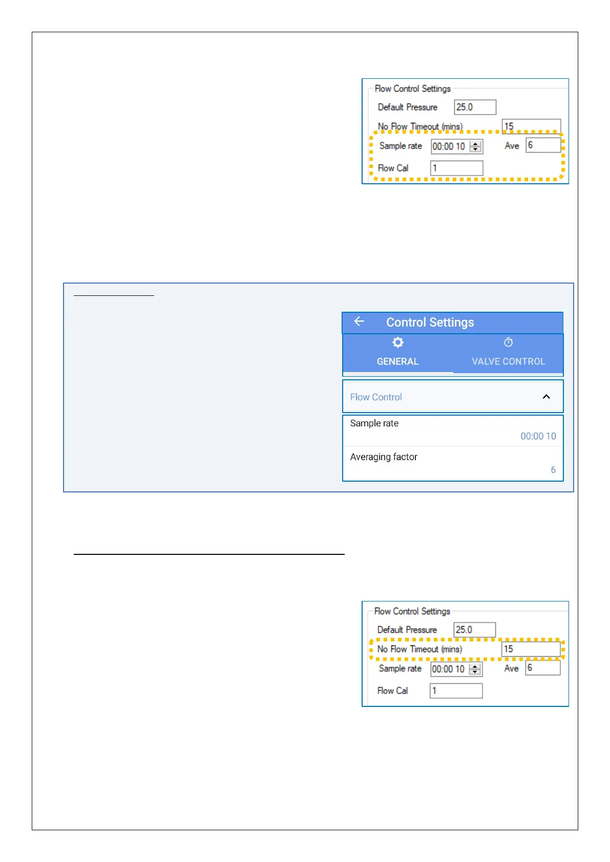 in the “No Flow Timeout (mins)” field before it is