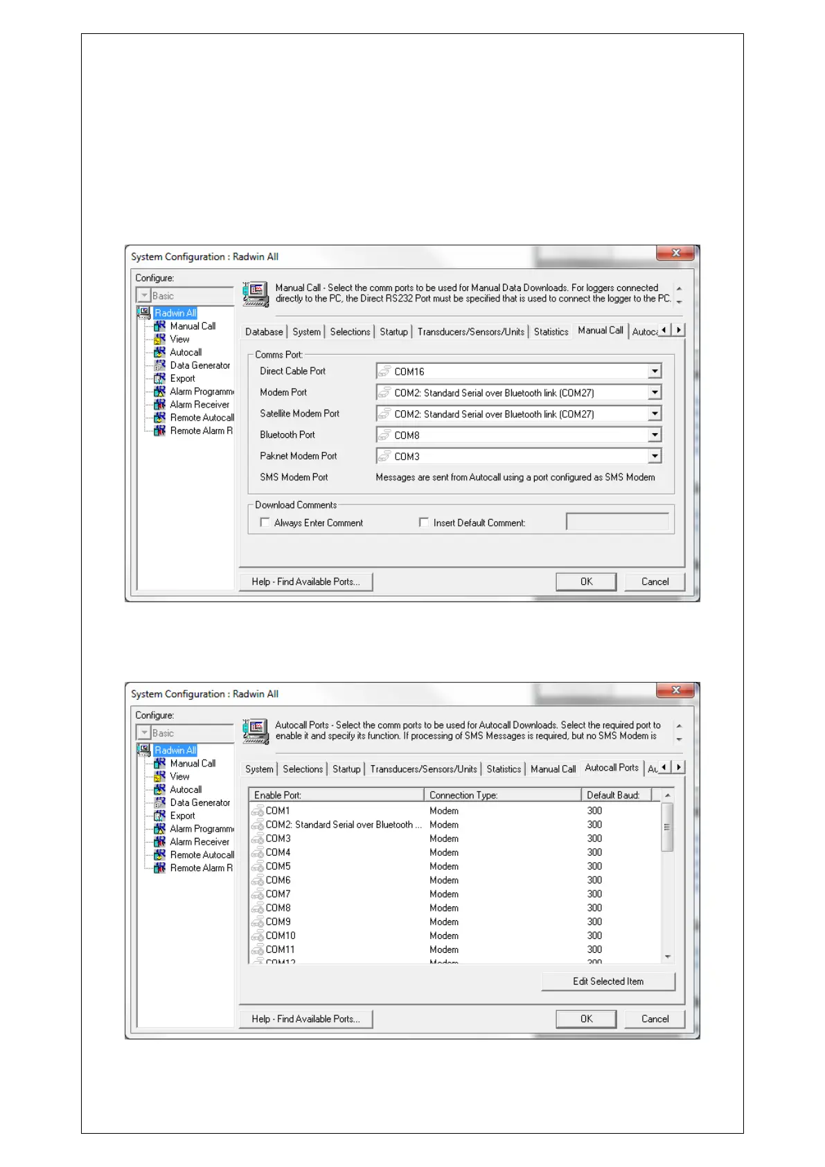 To configure the central computer to receive data, click on the “Autocall Ports” tab