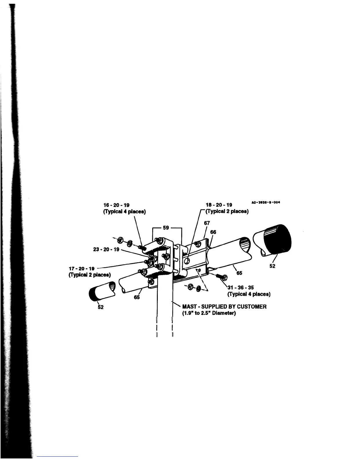 Assemble the two cast aluminum brackets (Item No. 59) on the mast at the