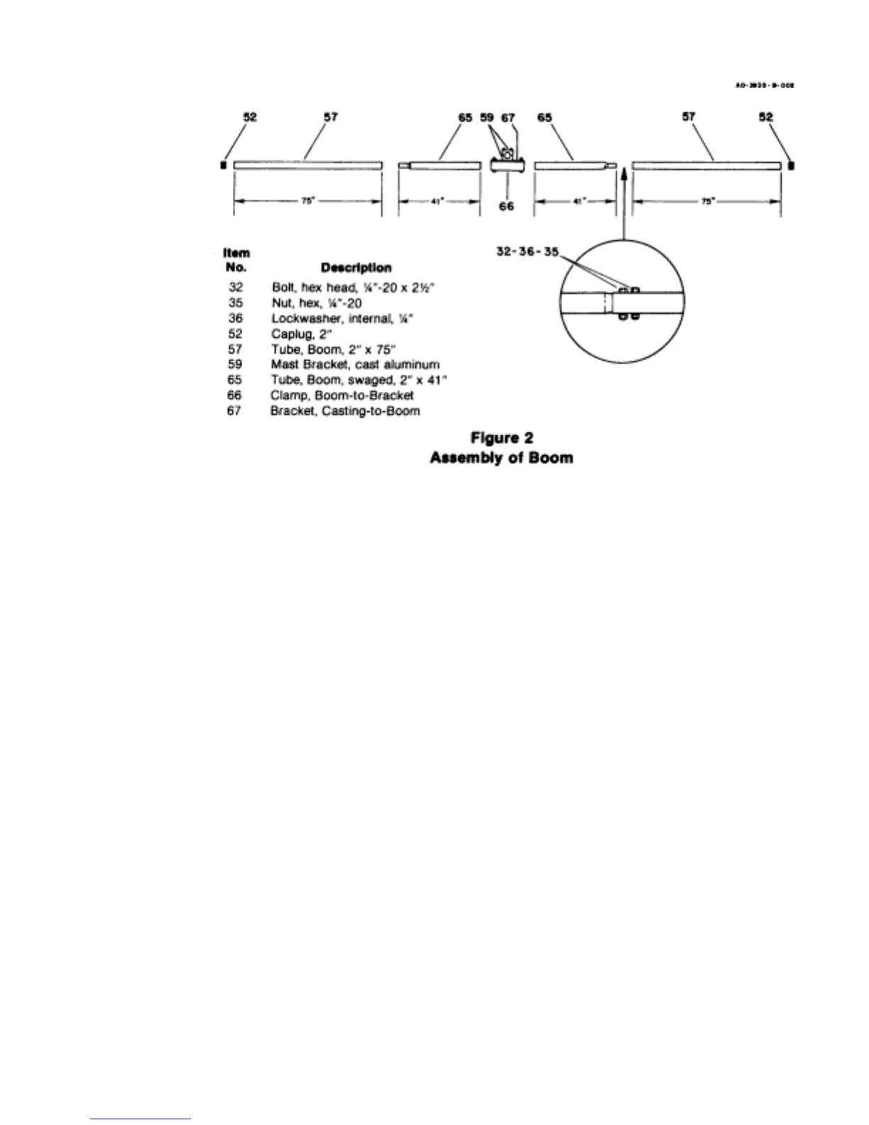 Brackets on the marked with a number 14. Assemble the brackets on the boom 35 inches to