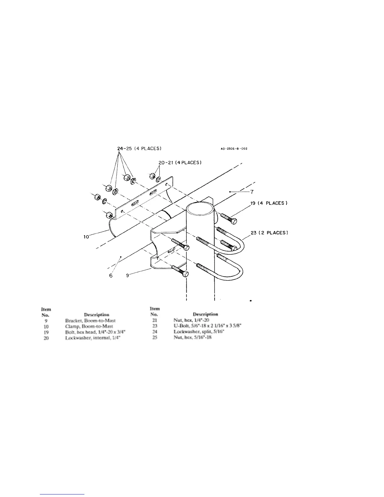 the boom-to-mast bracket (Item No. 9) and