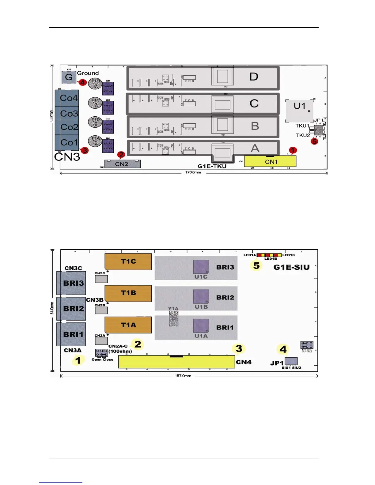 5.JP1 :TKU1/TKU2 switch to select TKU1/CO1~CO4 or TKU2/CO5~CO8
