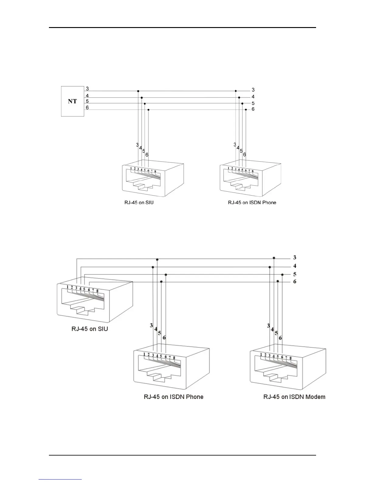 If the user has programmed the ISDN interface of SIU to a T-Interface, the wiring should be: