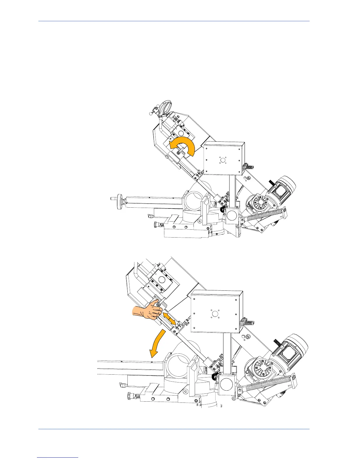 " loosen the ratchet lever on the sliding shaft of the front blade guide head;