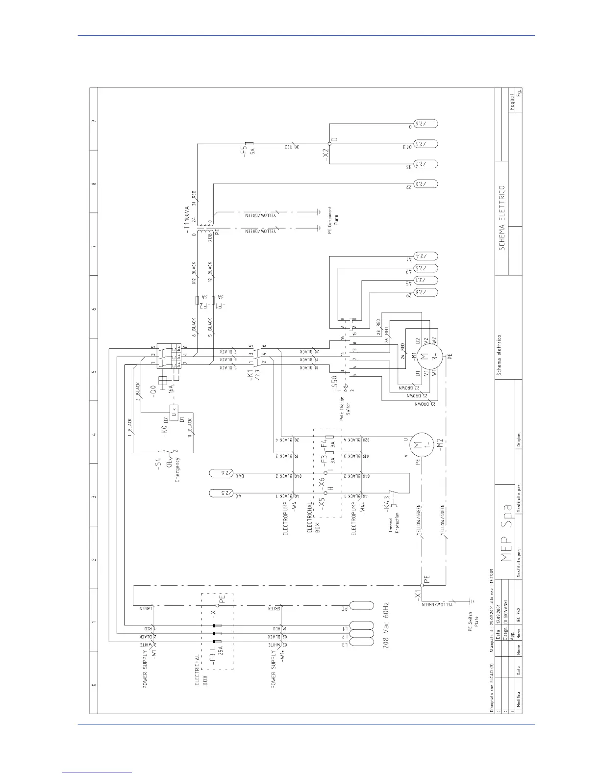 Hyd-Mech DM8 - Standard Version Electrical Diagram 208 V (CSA Standard)