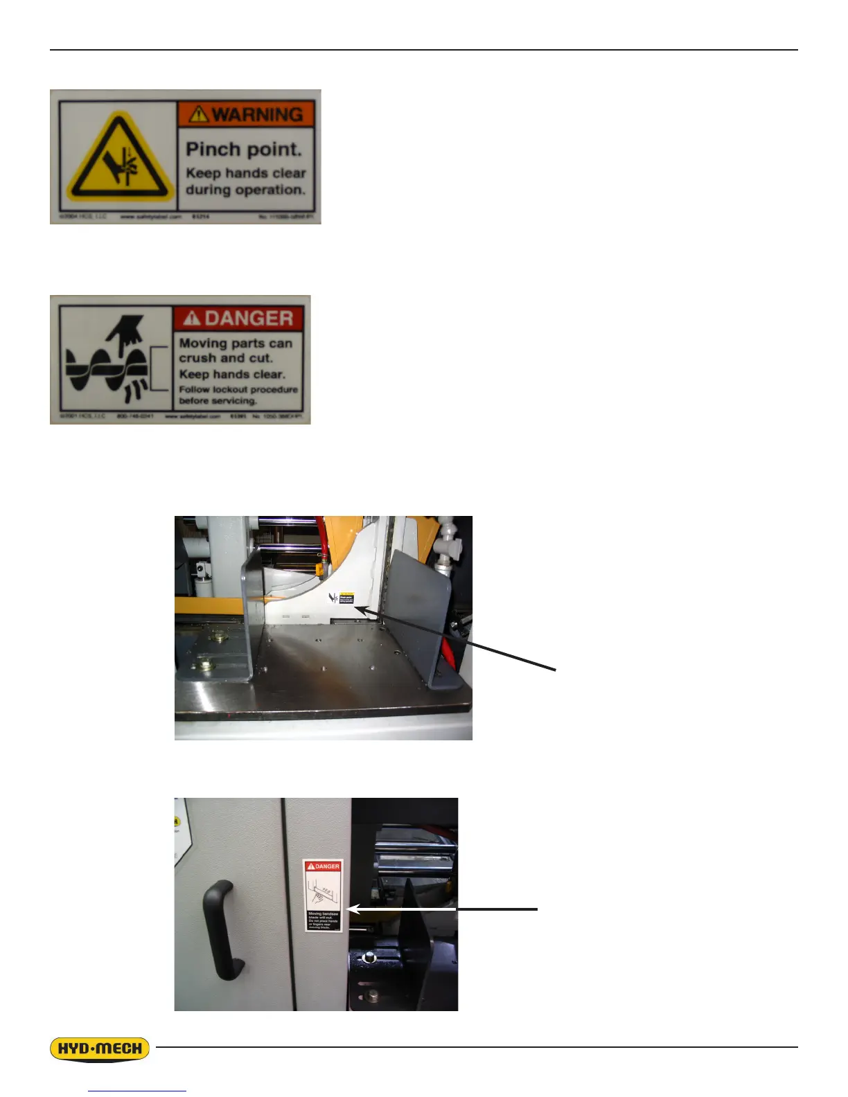 LOCATION AND PART NUMBERS OF SAFETY HAZARD LABELS ON