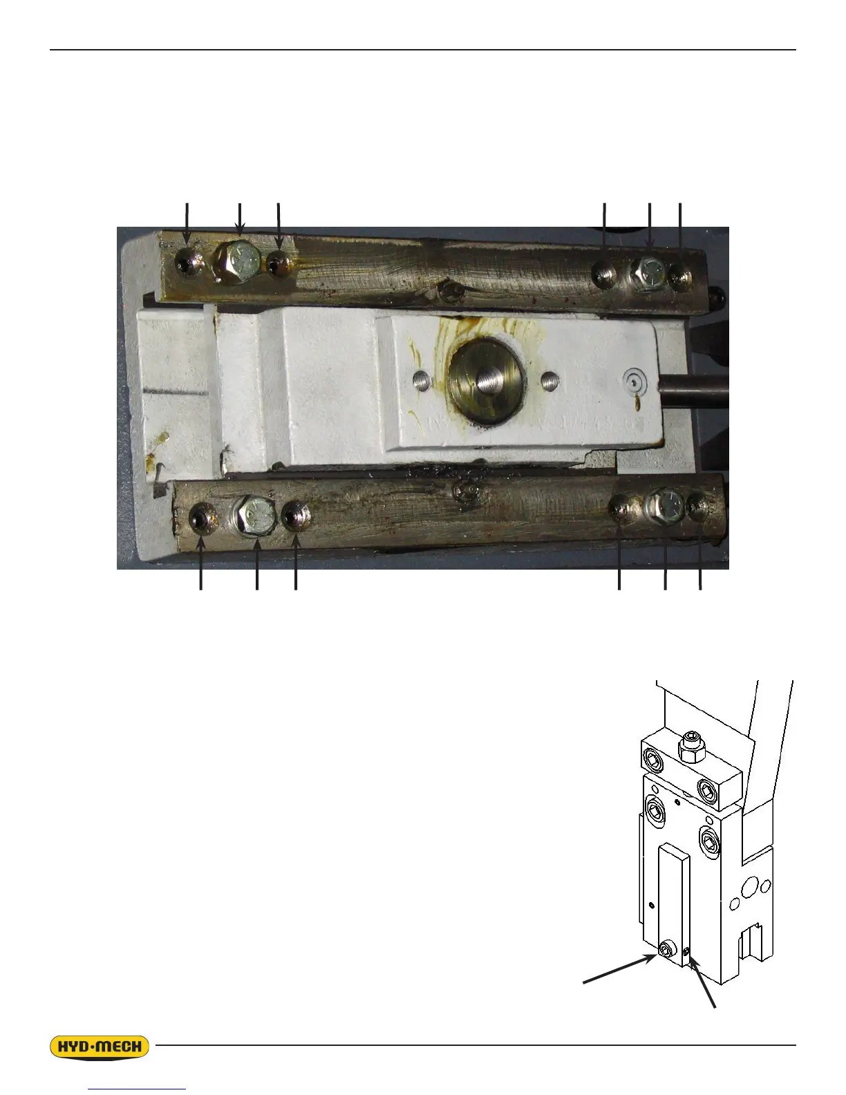 and turning in set screws “C” by equal amounts will move the blade off the wheel. Loosening bolts “B” and turning in set