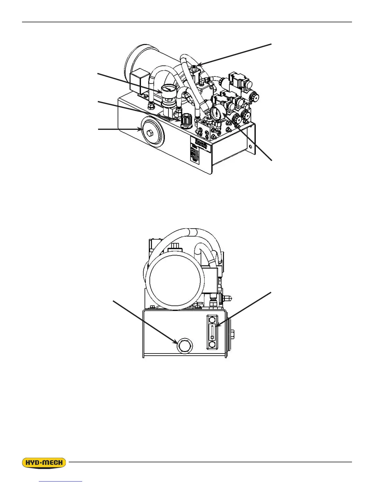 Hyd-Mech H10A - Hydraulic Filter Location; Hydraulic Oil Level Gauge and Drain Plug
