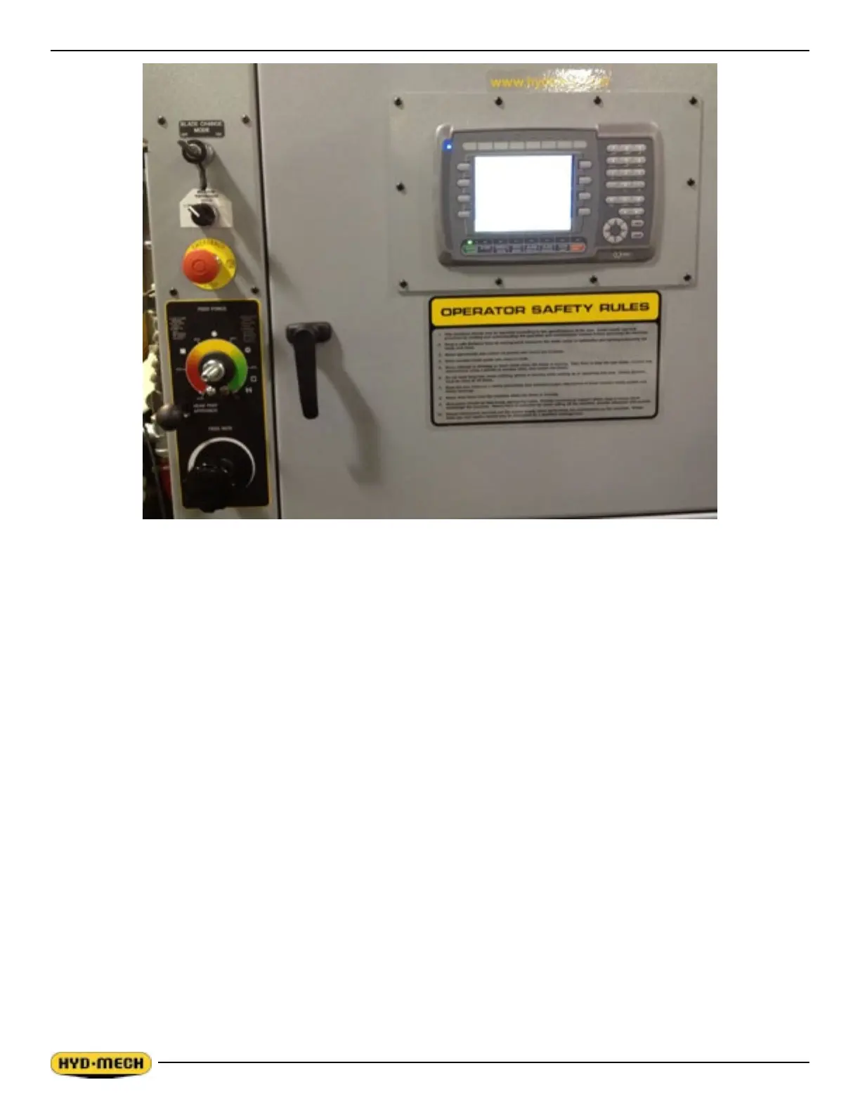 All of the machine functions are also controlled from the PLC operator interface. There are four function buttons on