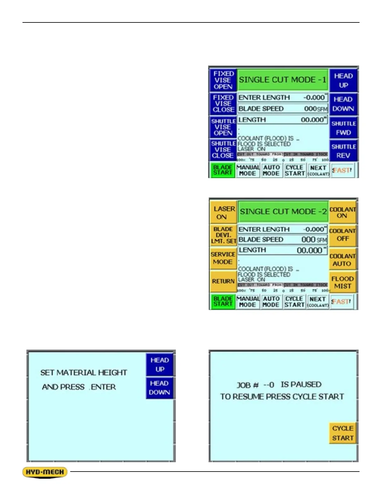 1. To pause the SINGLE CUT CYCLE, press the CYCLE