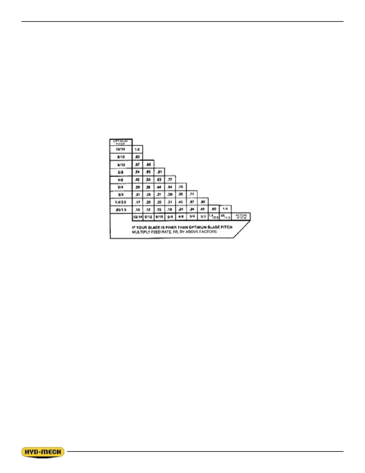5. Feed Rate for ¾ TPI blade is 1.8 in/min (45mm/min). Feed Rate for 4/6 TPI blade is 1.8 in/min x .70 = 1.3in/min