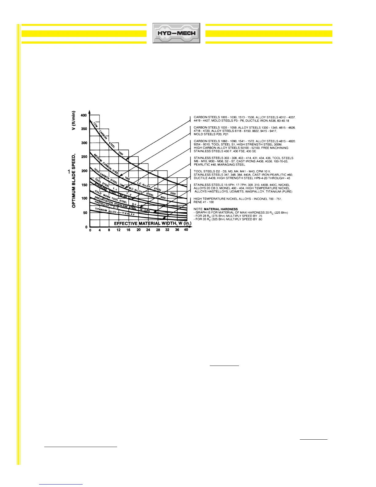 2. Material Hardness - The graph above illustrates blade speed curves for materials of hardness
