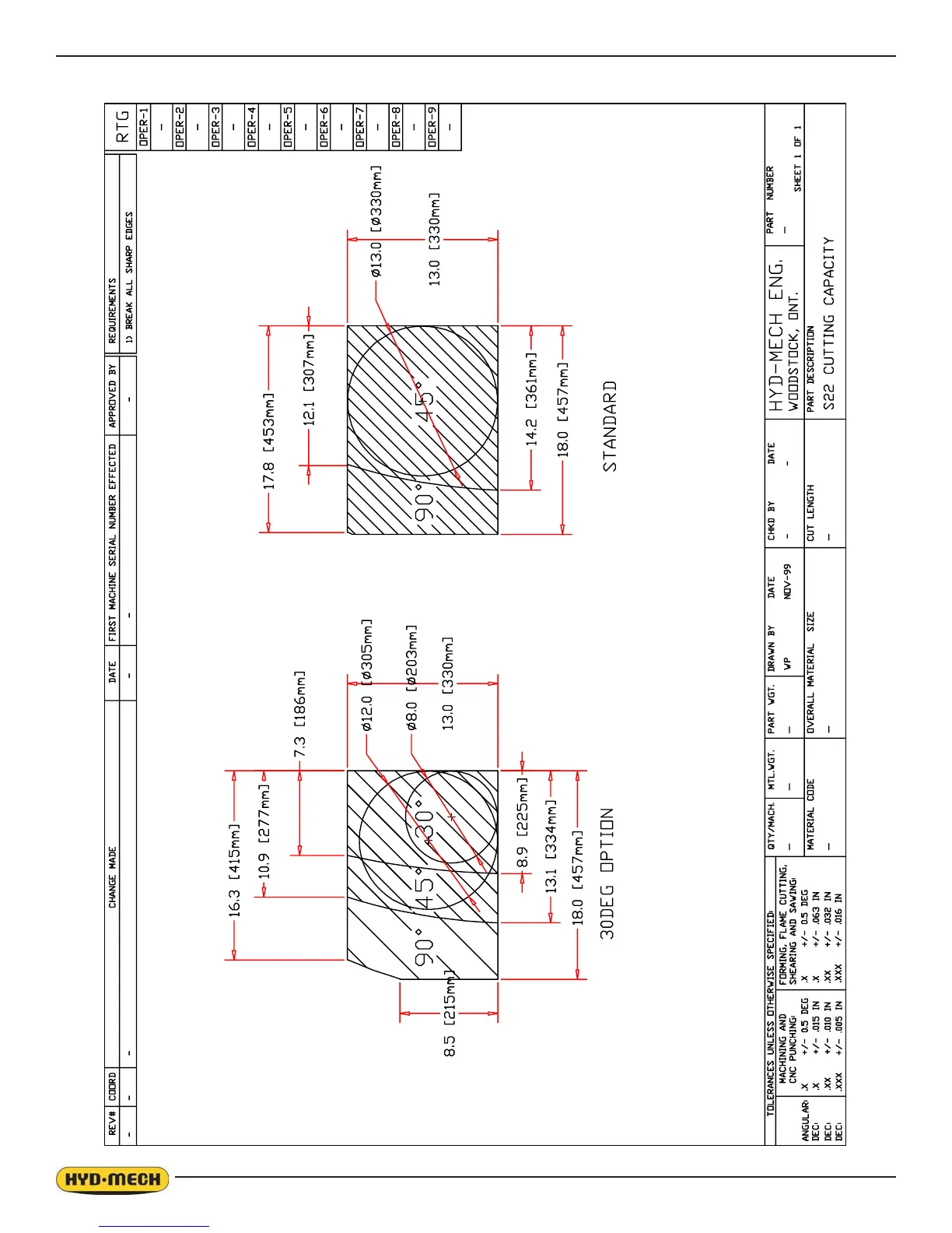 Hyd-Mech S-23 - S20 Cutting Capacity Details; S20 Cutting Capacity Diagrams