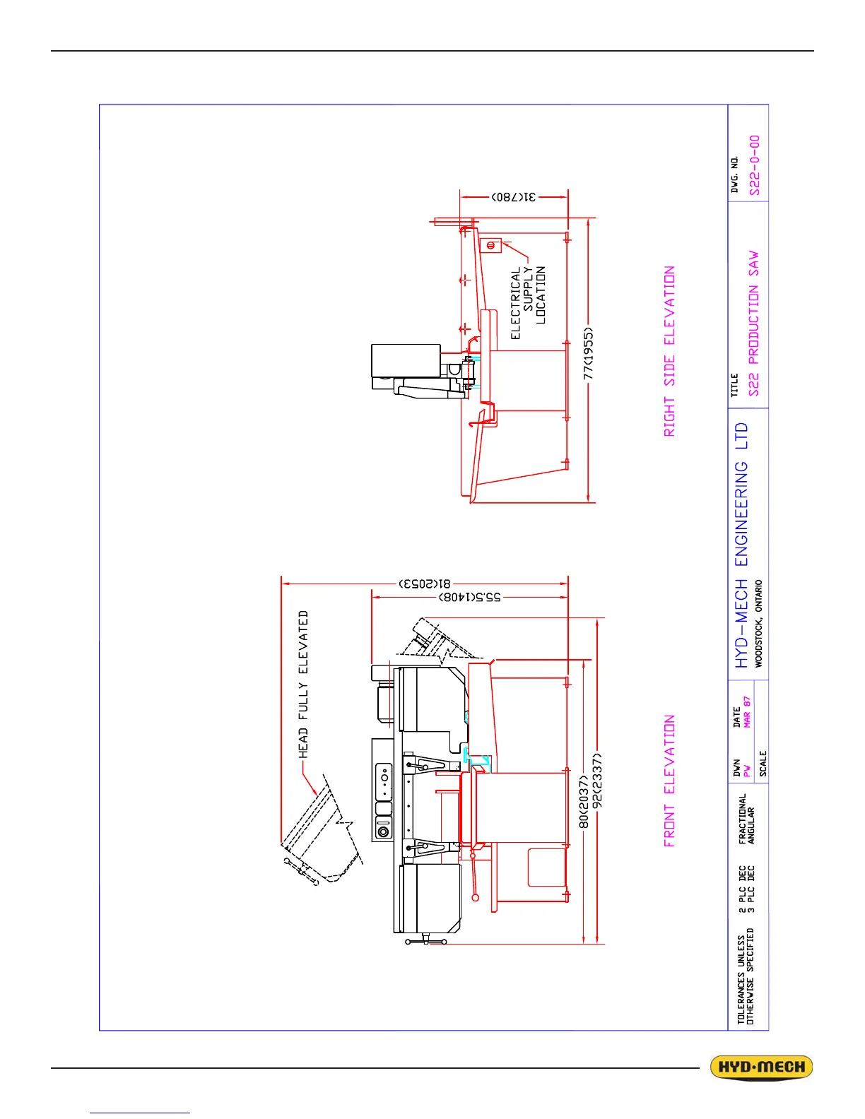 Hyd-Mech S-23 - S20 Machine Layout (Sheet 1)