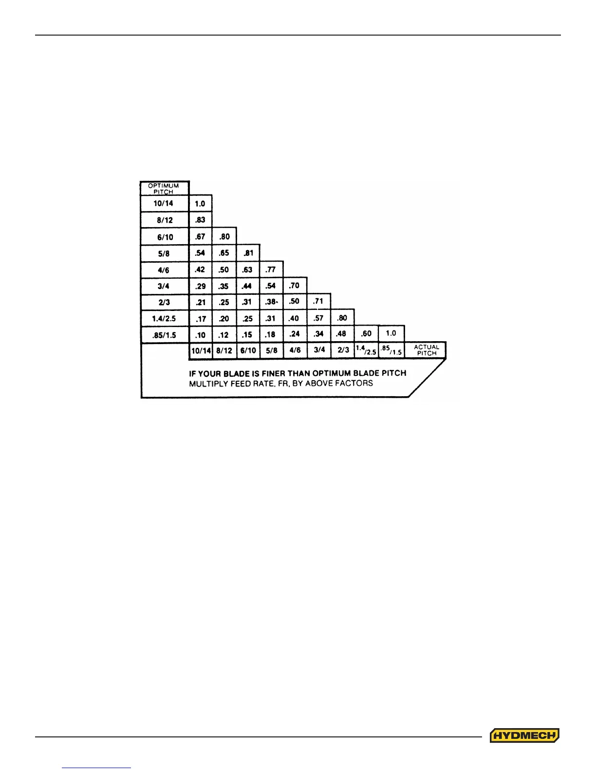 If the saw is tted with a blade coarser than optimum (e.g.: 1.4/2.5 TPI) we can still use the graph, but we go to the 1.4/2.5