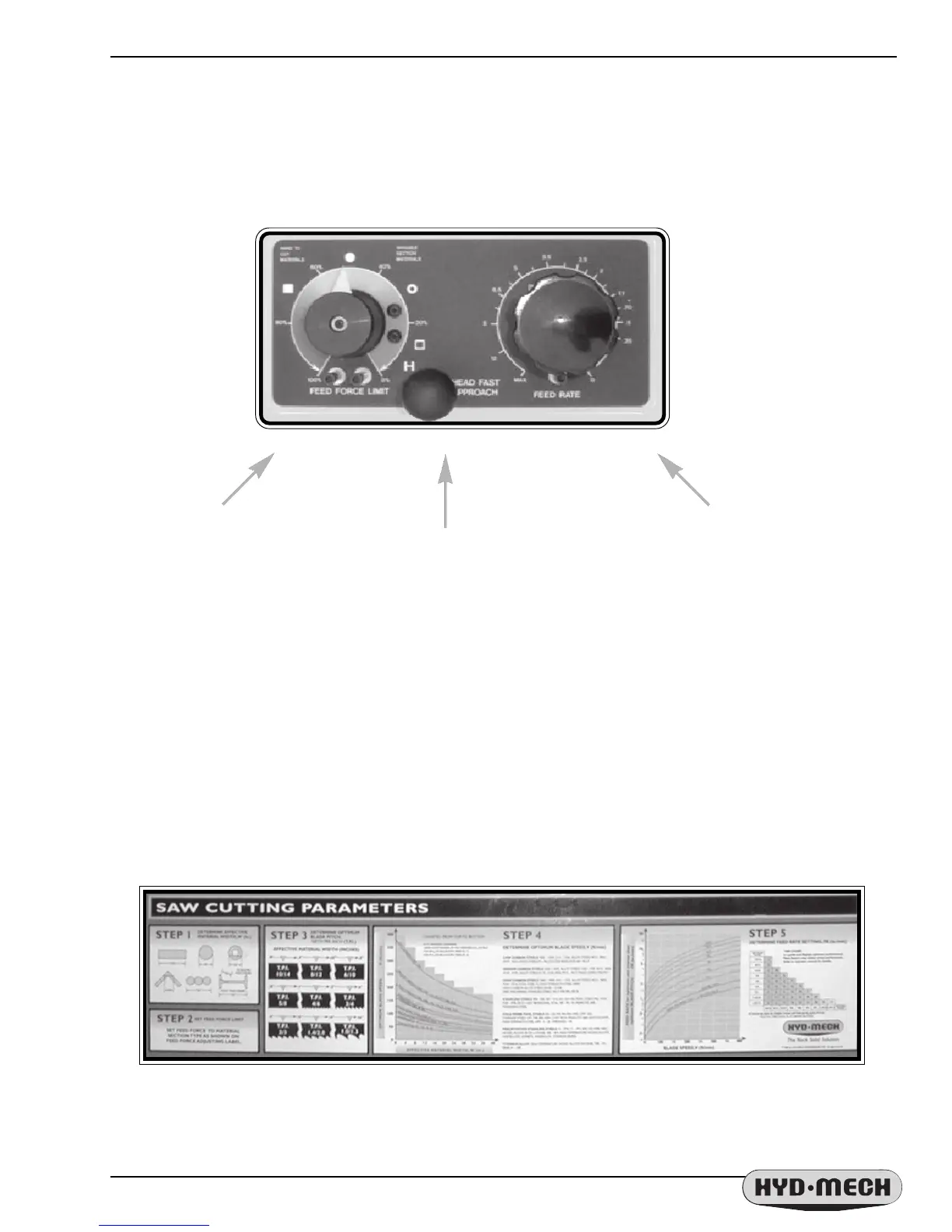 The Hydraulic Feed Control is located to the top of the control panel. These controls allow independent control of