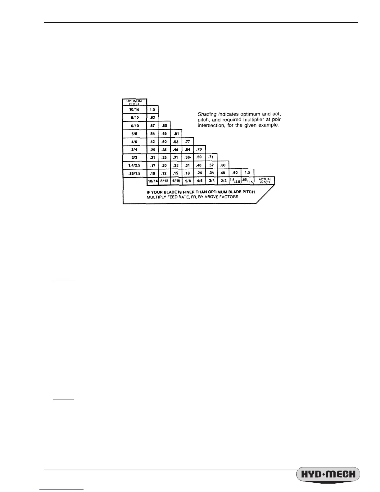 Blade speed reduced by hardness factor : 225 ft/min X .60 = 135ft/min
