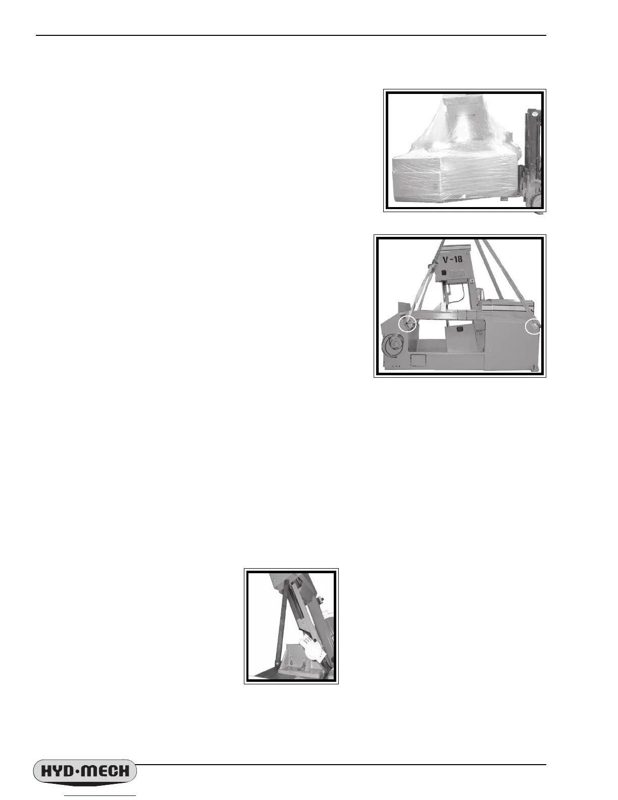 To lift a V-18 II bandsaw with a forklift, it must have the following.