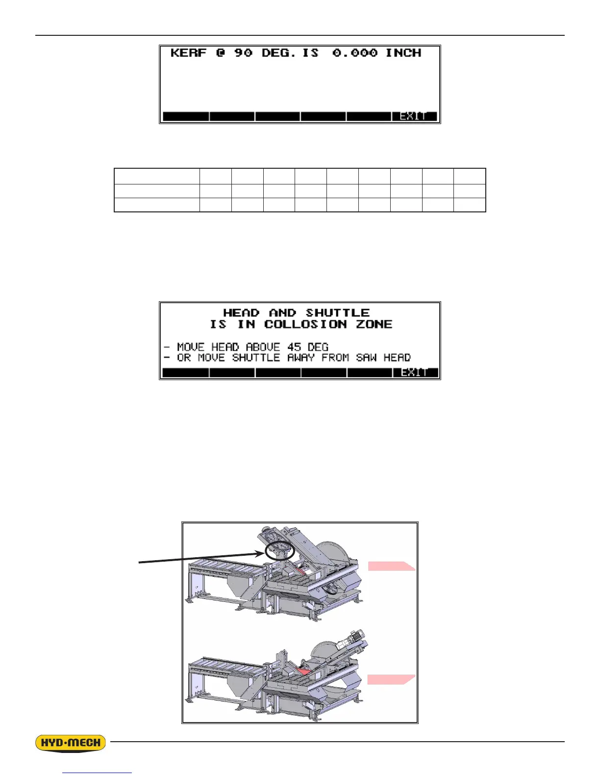 perform the cut when the head is turned 30 degrees towards the outfeed side of the machine where there is no possible