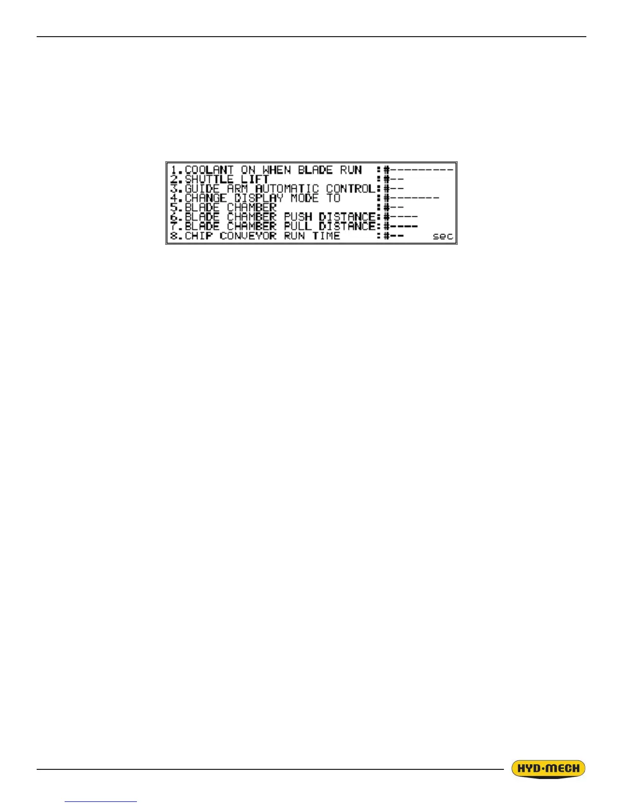 “PLC Parameters” at the end of this section to view the list. HYD MECH service department should be contacted before