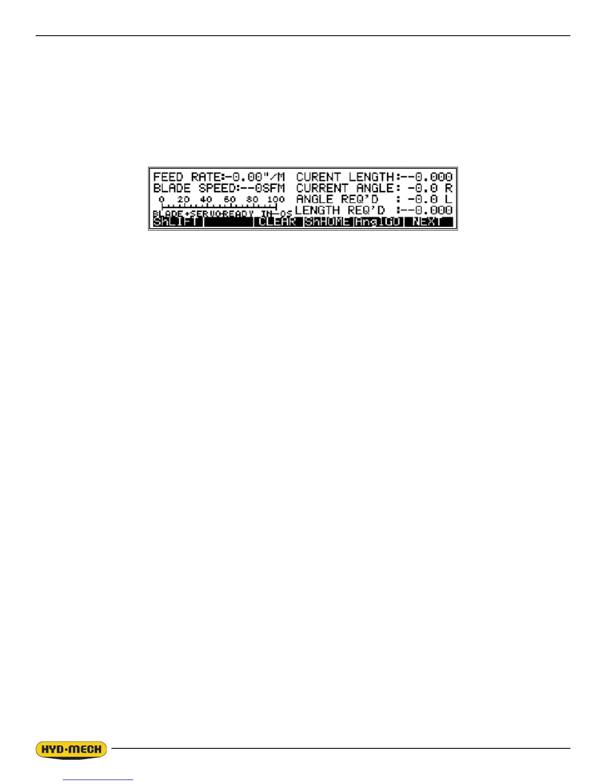 and the screen will indicate a paused condition. All movements will immediately cease, except blade will continue
