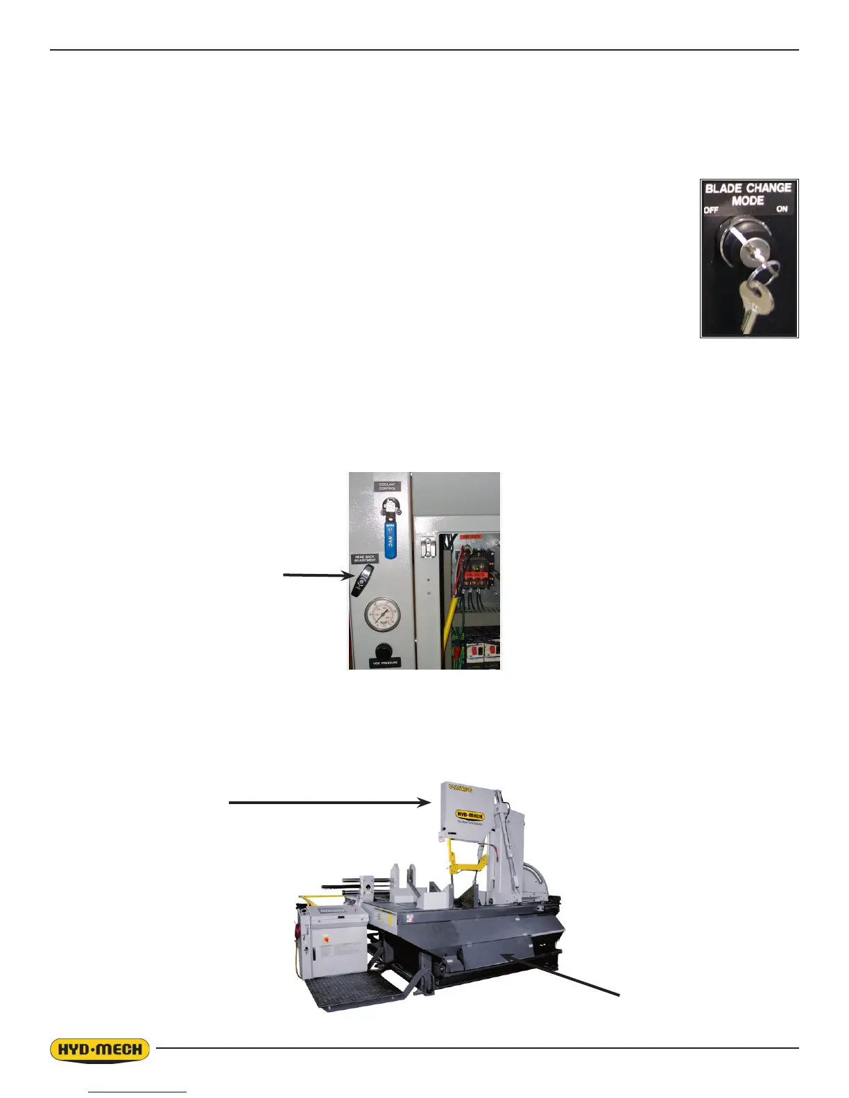 All machines with hydraulic blade tension are equipped with a ‘Blade Change Mode’ key switch,
