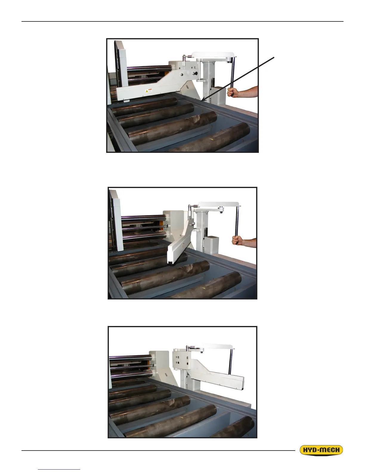 1. Raise the shuttle bundling arm high enough to clear the roll off guard of the barfeed.