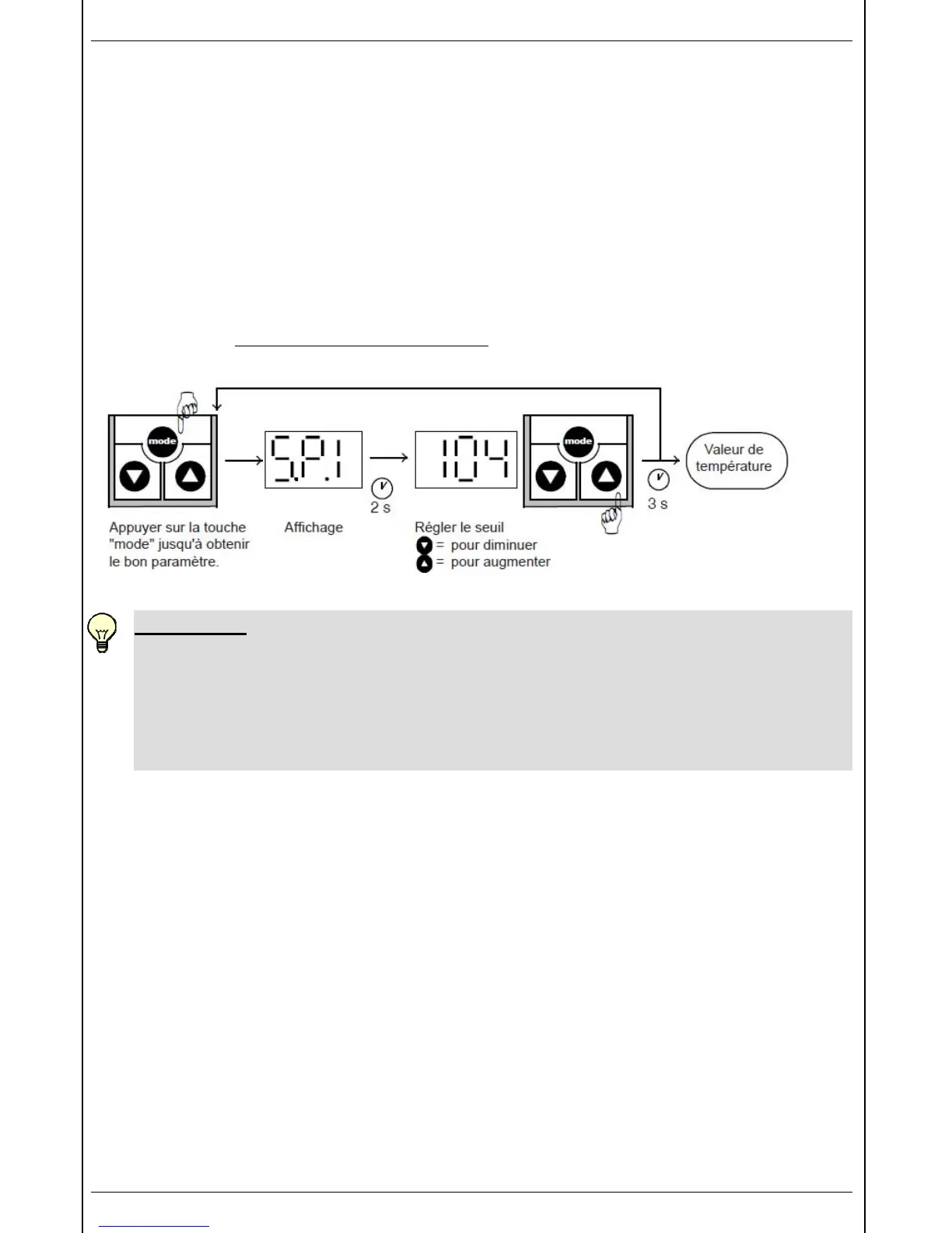• Appuyer sur la touche "mode": l'affichage indique "S.P.1" puis "hY.1".