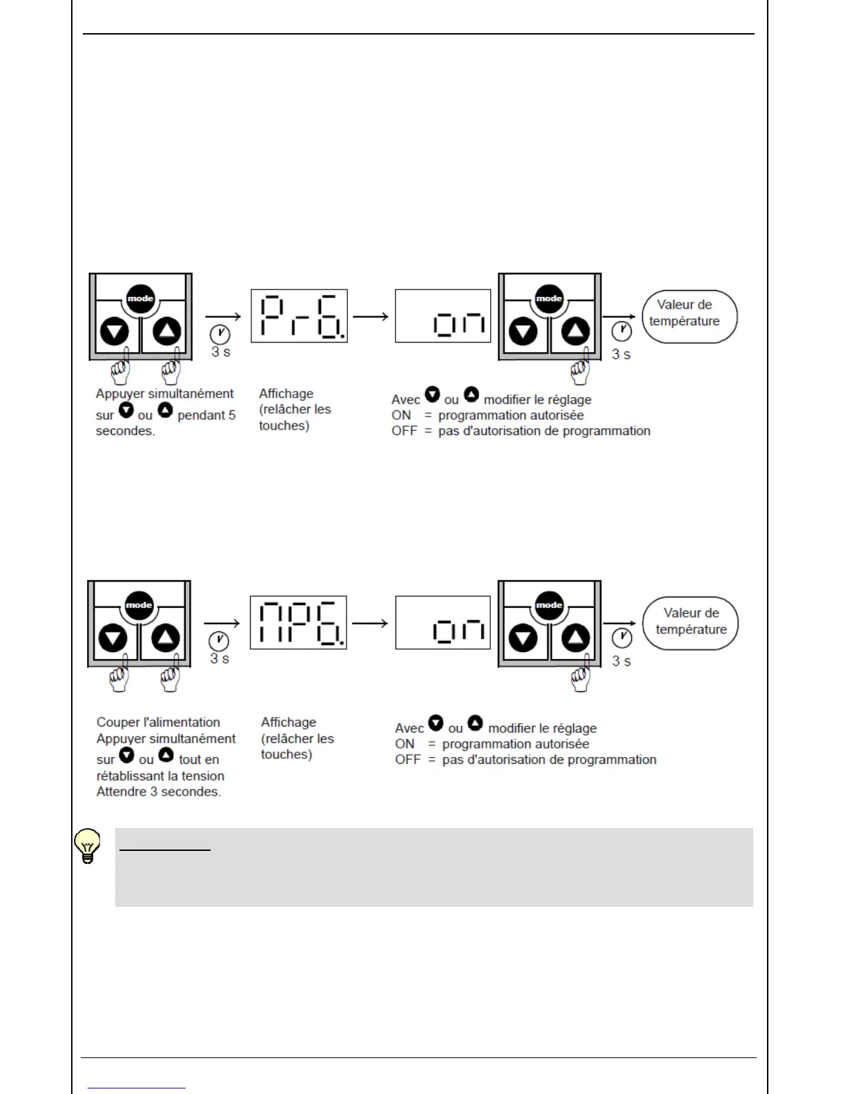 se fait via le menu de base. Cette protection contre les modifications accidentelles permet
