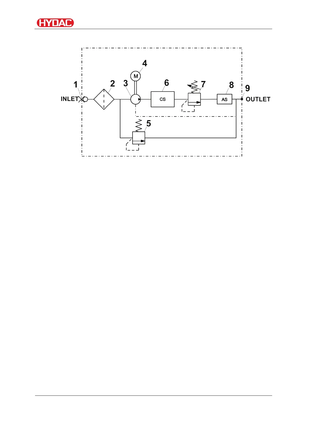The pressure relief valve (5) protects the pump and the measuring cell from