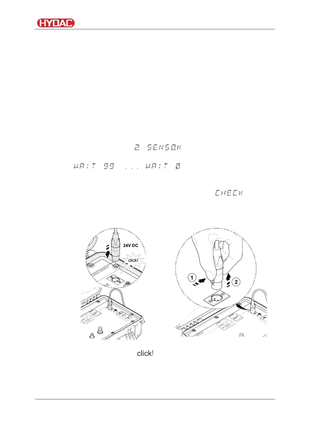 After the unit is plugged in, HYDAC FCU 1### appears in moving