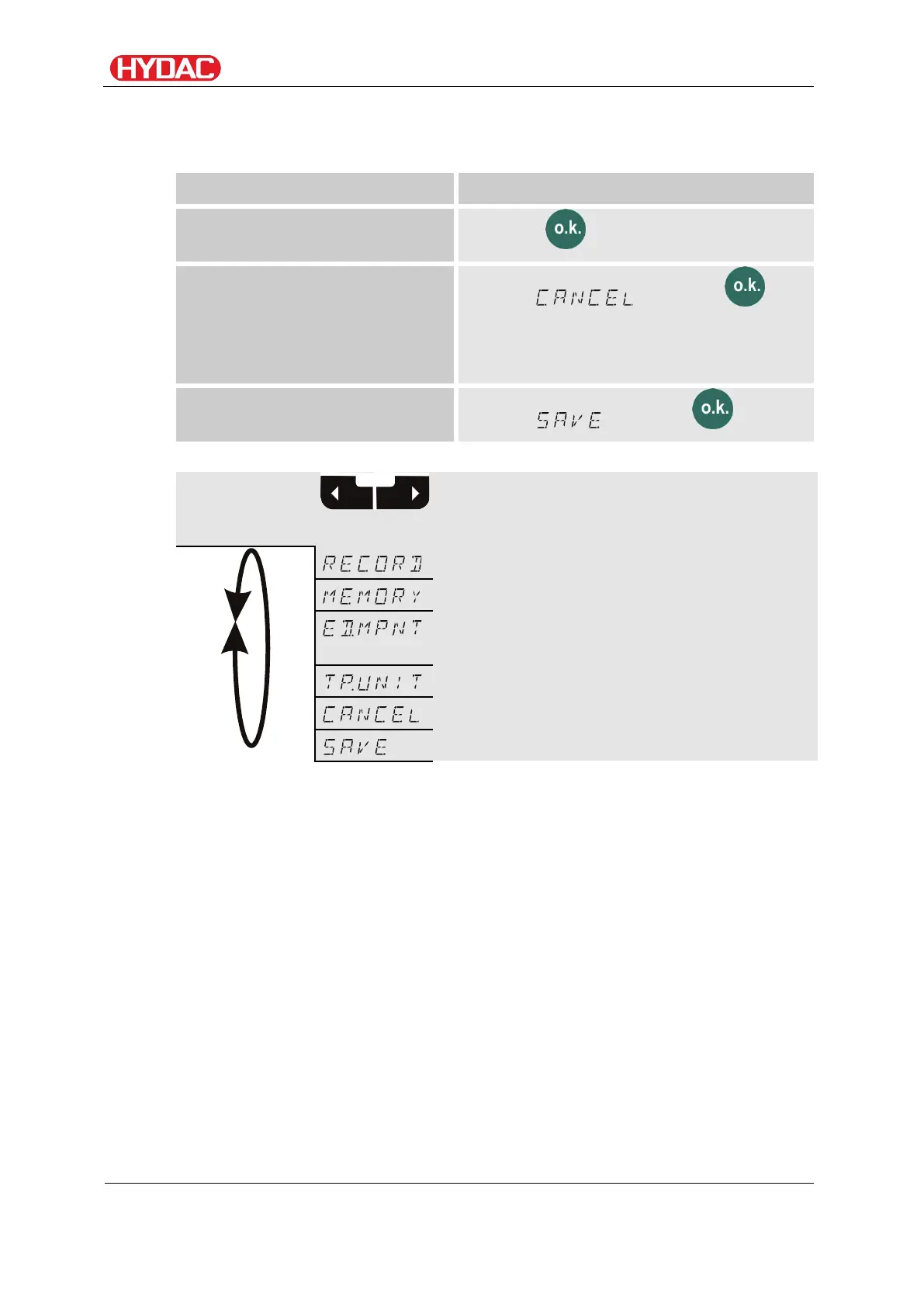 Select operating level / configuration menu