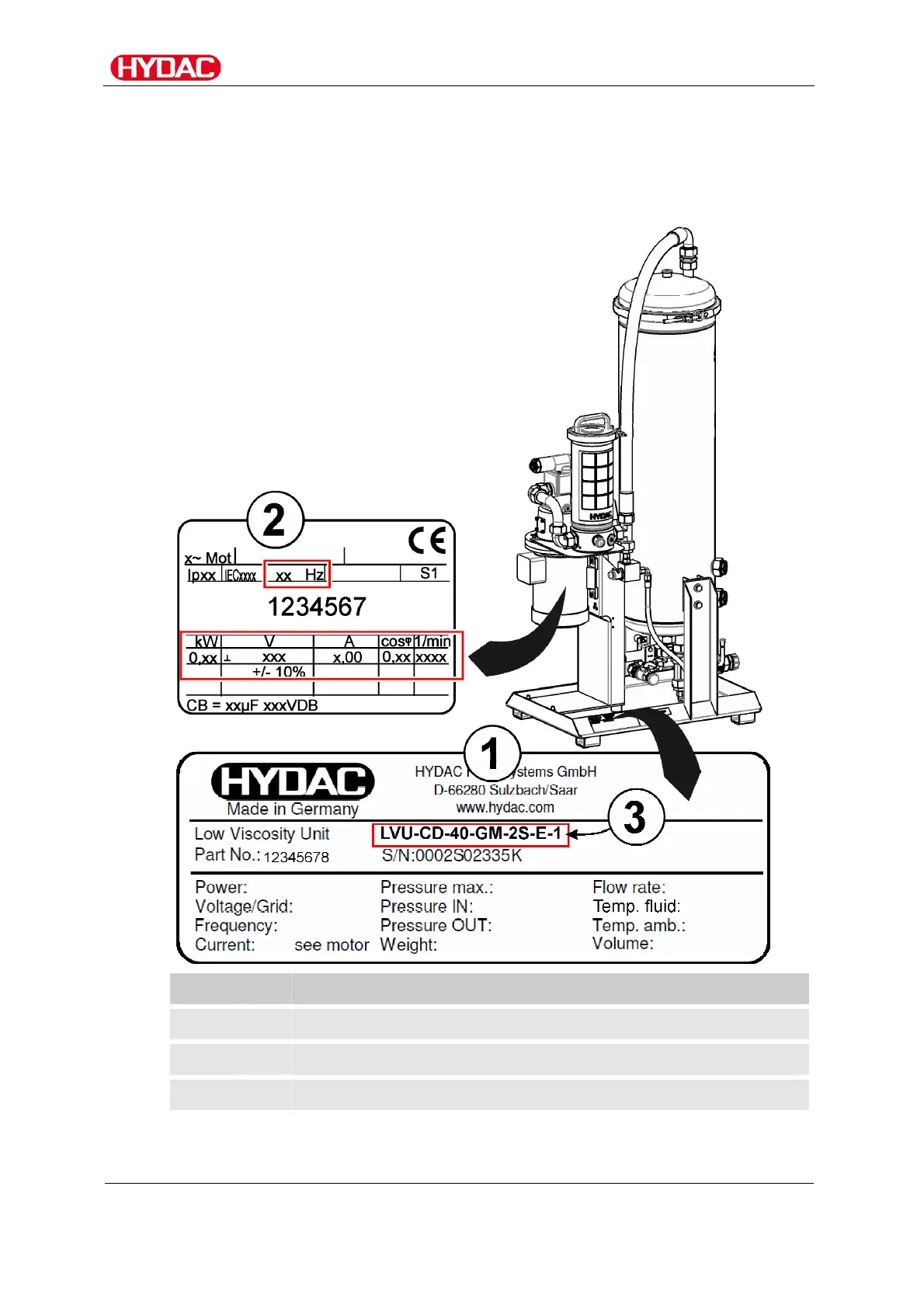 Details for identifying the filtration unit can be found on the name plates on