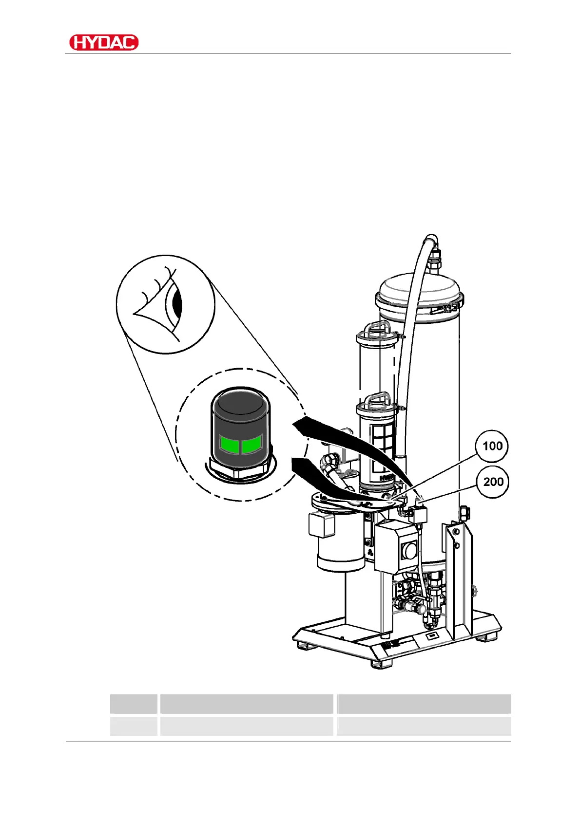 100 Clogging indicator, visual, for Replace the filter element in the