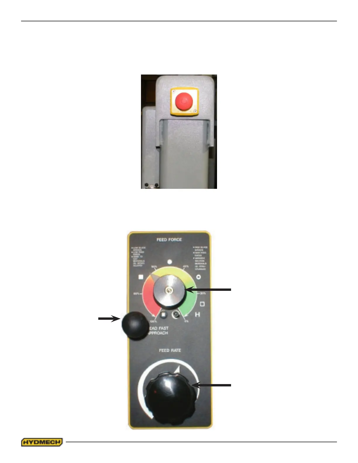 The Hydraulic Feed Control is located to the left of the control panel. These controls allow independent control of