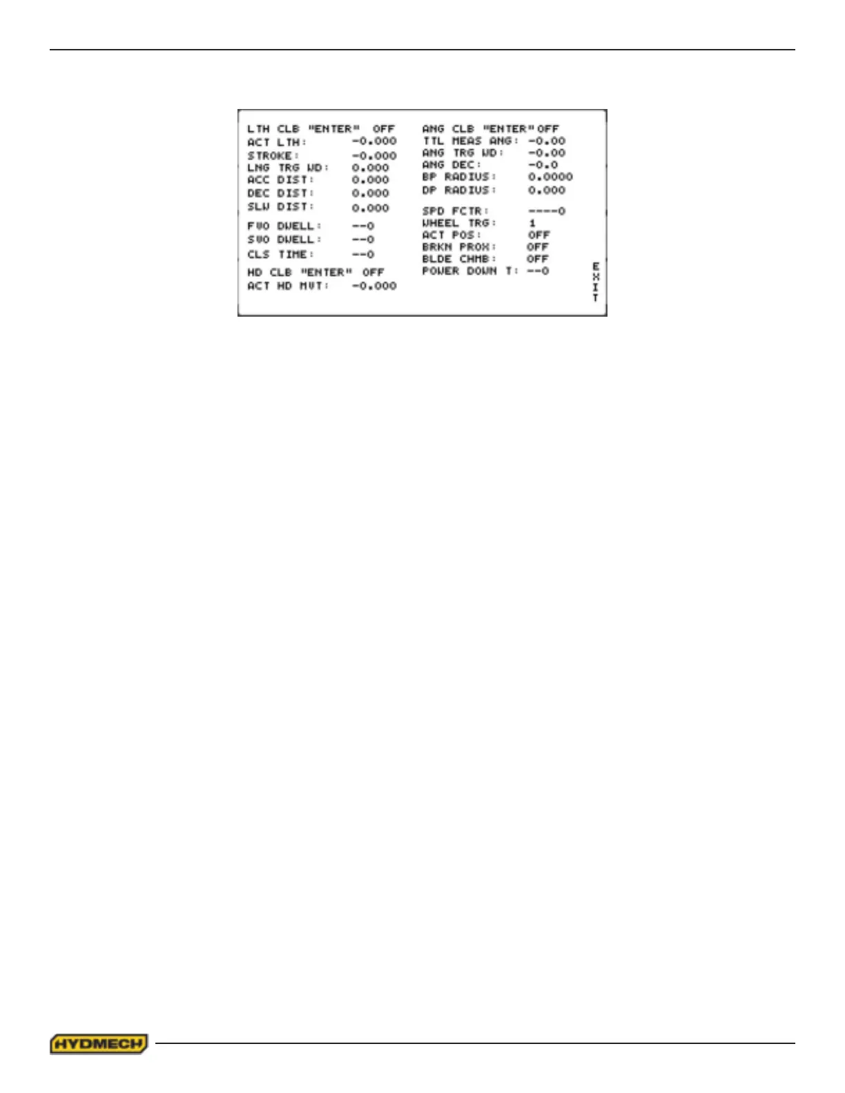 1. With the cursor on the line that reads - LTH CLB “ENTER” OFF, press the ENTER key. The line should then read -