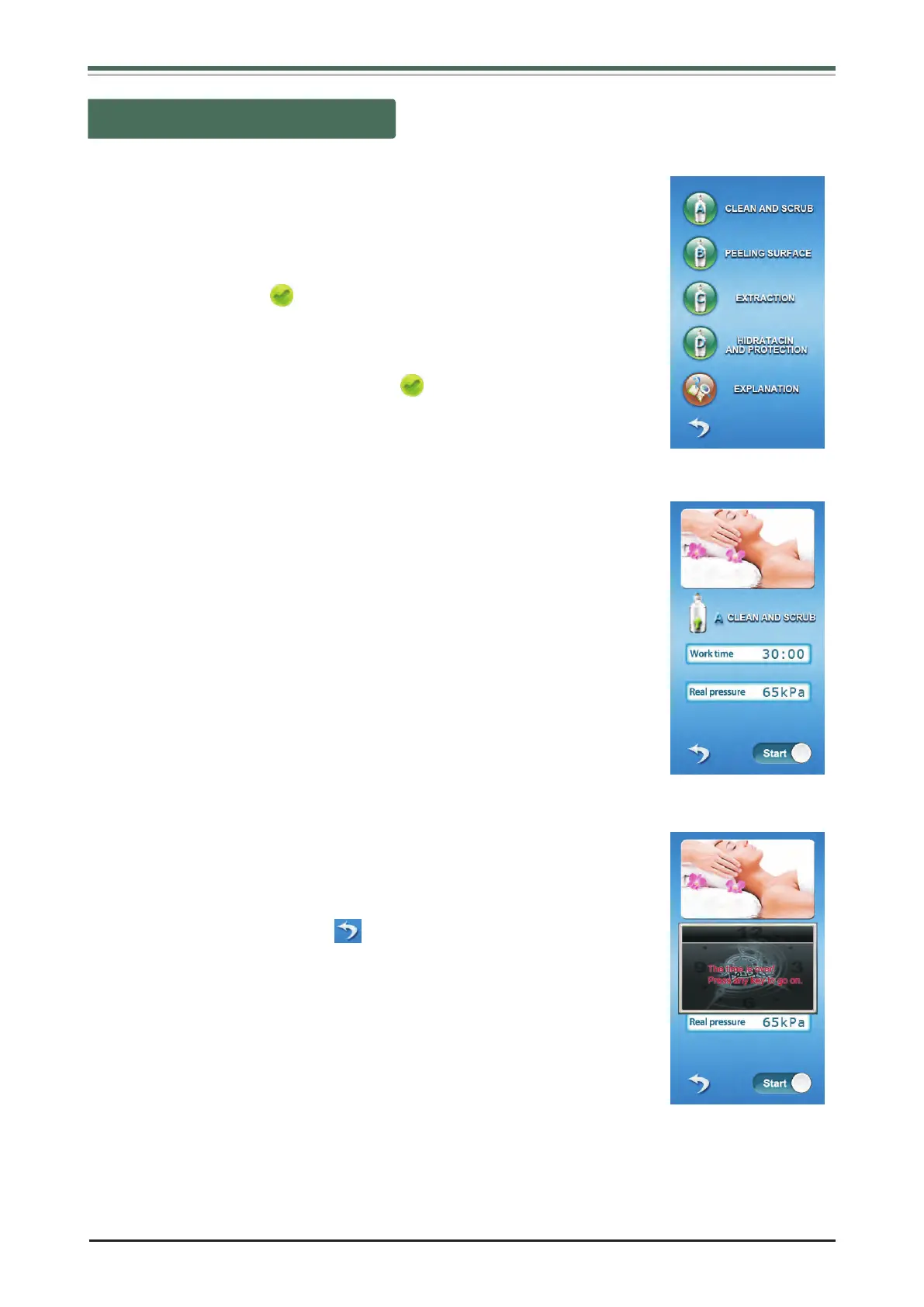 confirming button, the system begin working. If you want to pause during operation,