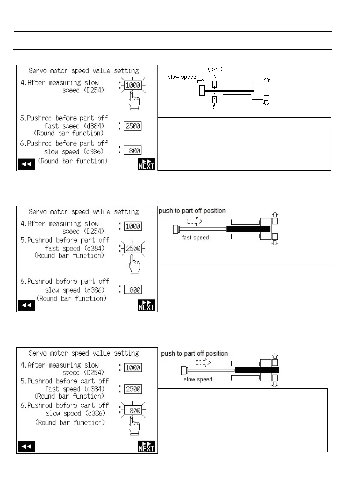 ( 5 ) Pushrod before part off fast speed value setting(Round bar)