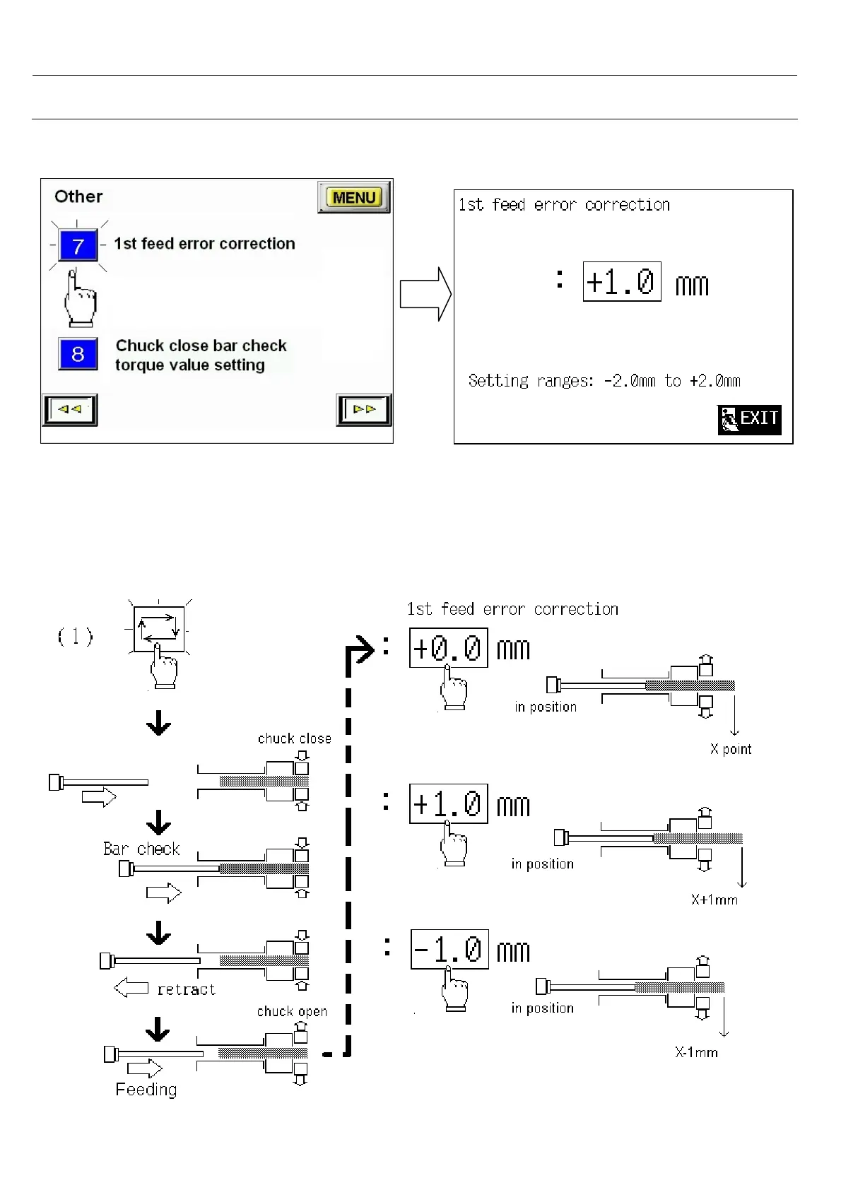 Select 7.< 1st feed error correction >