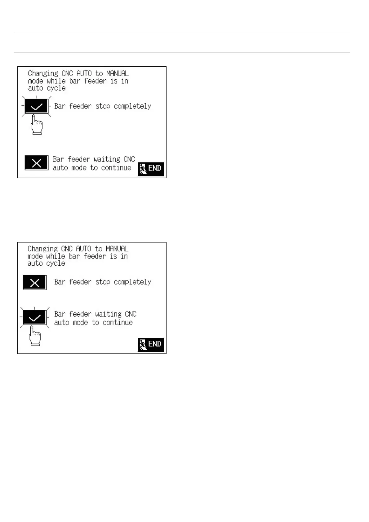 (2) During bar feeder in operation ,changing CNC auto to manual mode ,bar feeder will stop