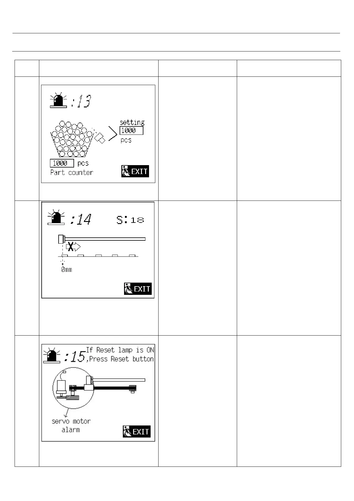 Alarm Picture Cause Action