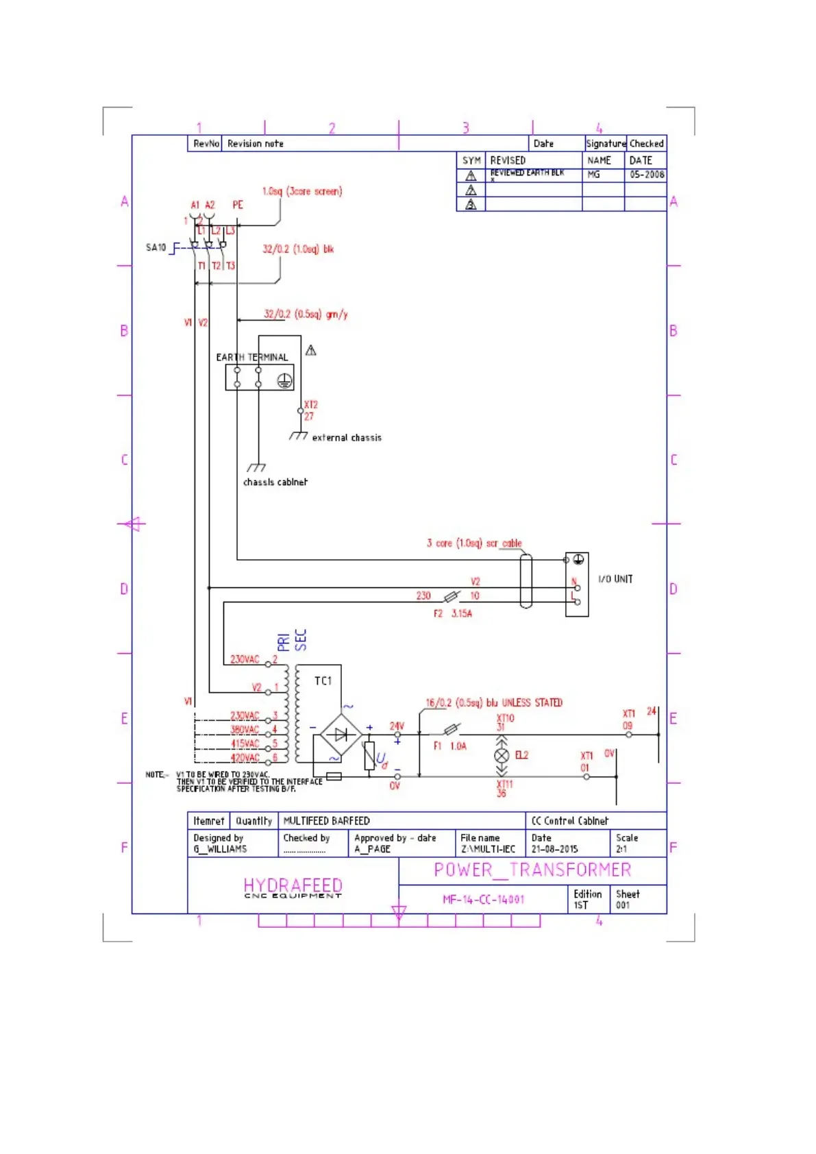 Hydrafeed Multifeed 65 - Electrical Schematics and Wiring; Power Transformer and Safety Circuits